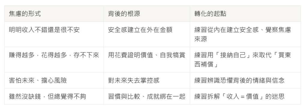 這時候你會發現,金錢不是焦慮的解方,有時反而放大了內在的不安。