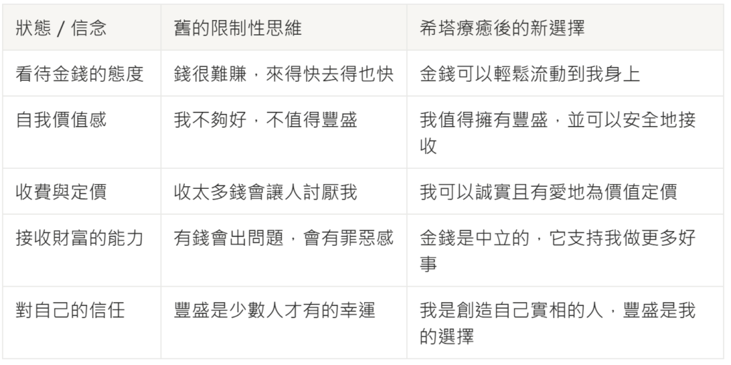 許多人在接受希塔療癒後,發現自己開始更自在地談錢、提高收費、遇到更有價值的機會,甚至不再對金錢感到焦慮。因為他們的「內在容器」已經準備好了。