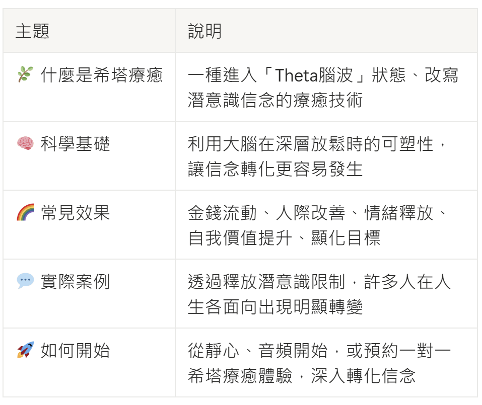 若你想更深入了解自己的潛意識運作,或針對具體的生命課題(如金錢、關係、自我價值等)進行轉化,建議可以嘗試一次一對一的希塔療癒。透過專業療癒師的引導,你可以更快看見自己卡住的點,並且在安全、溫柔的空間中進行釋放與重建。